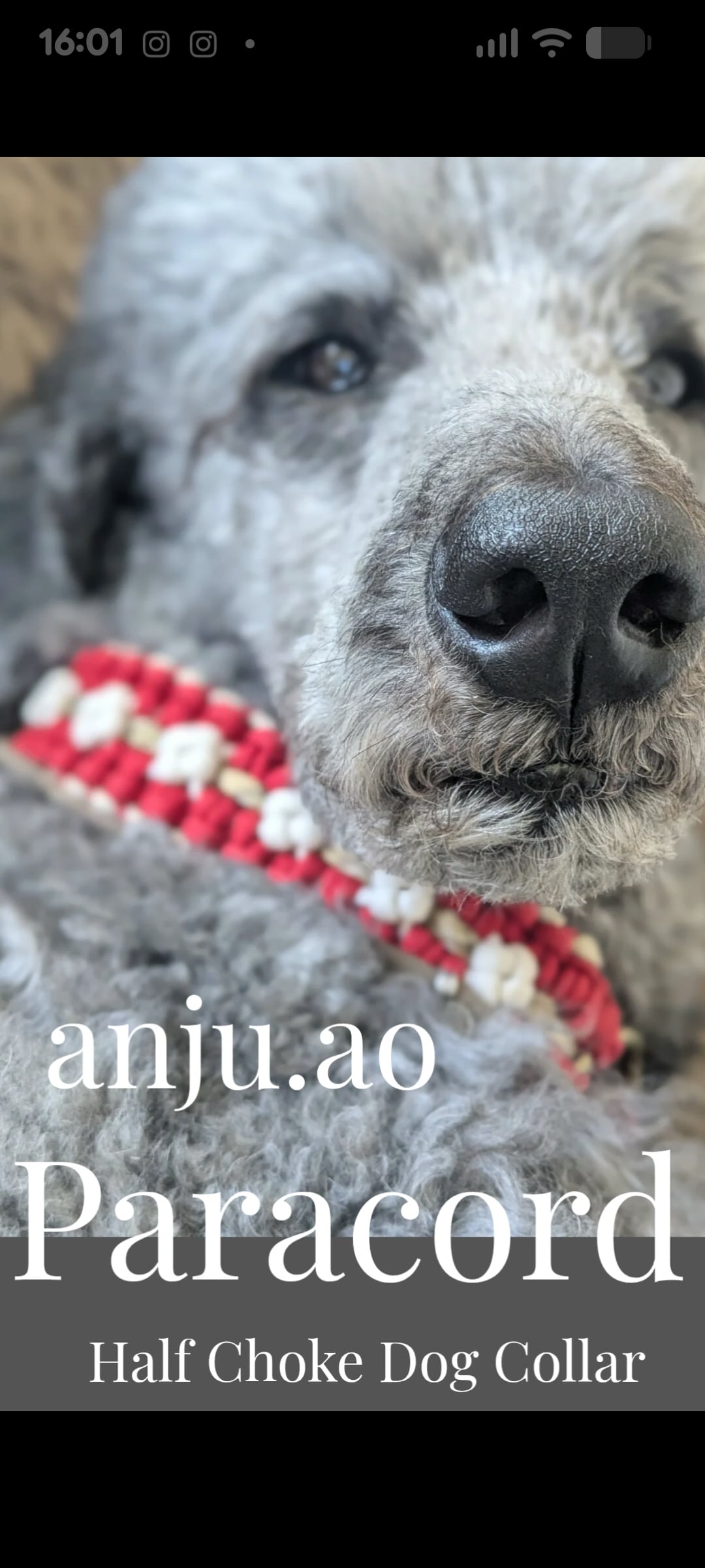 A handcrafted paracord half choke collar, soft and lightweight with a 4cm wide design that distributes pressure gently — kind to senior dogs and dogs with sensitive tracheas.