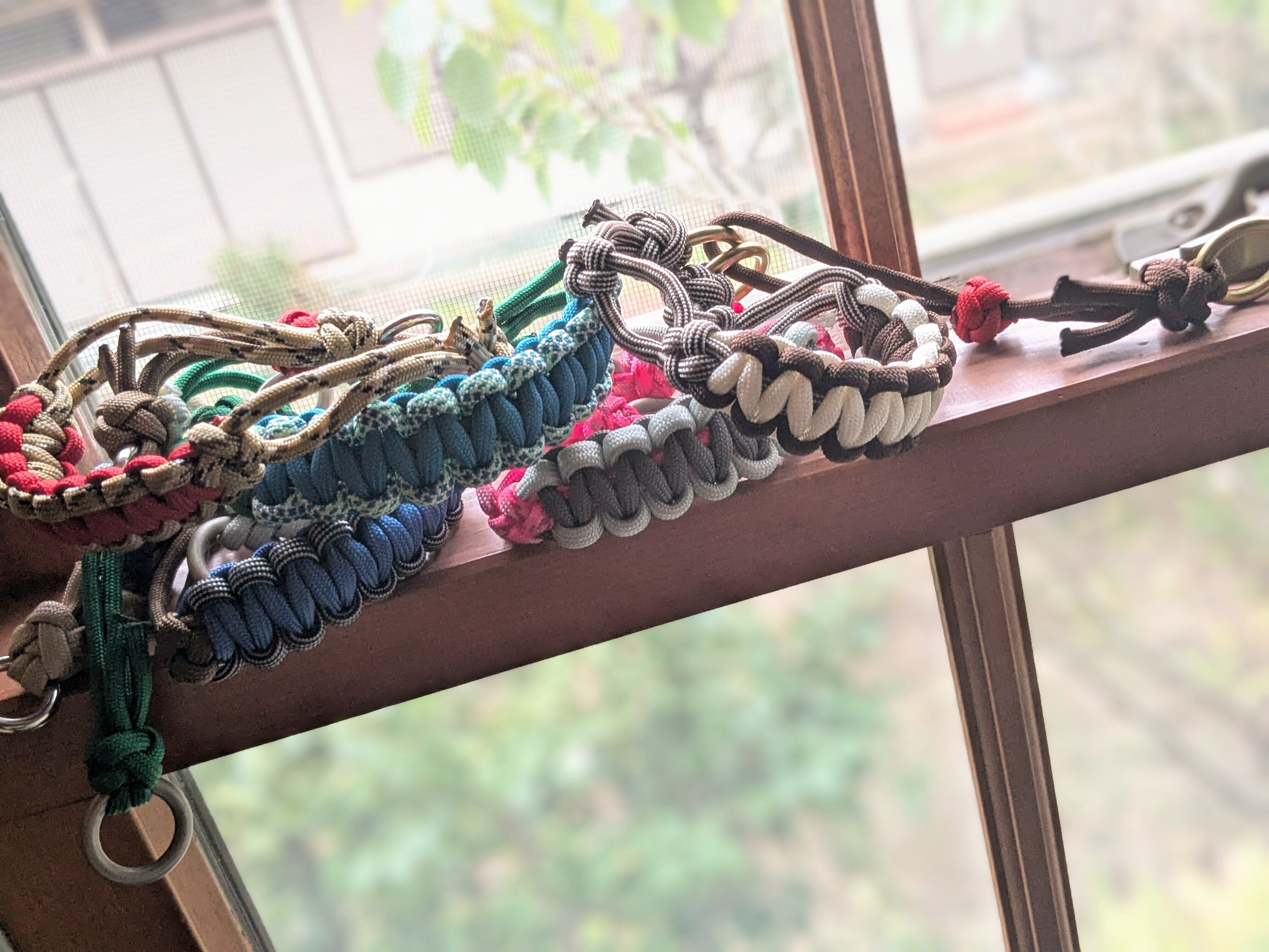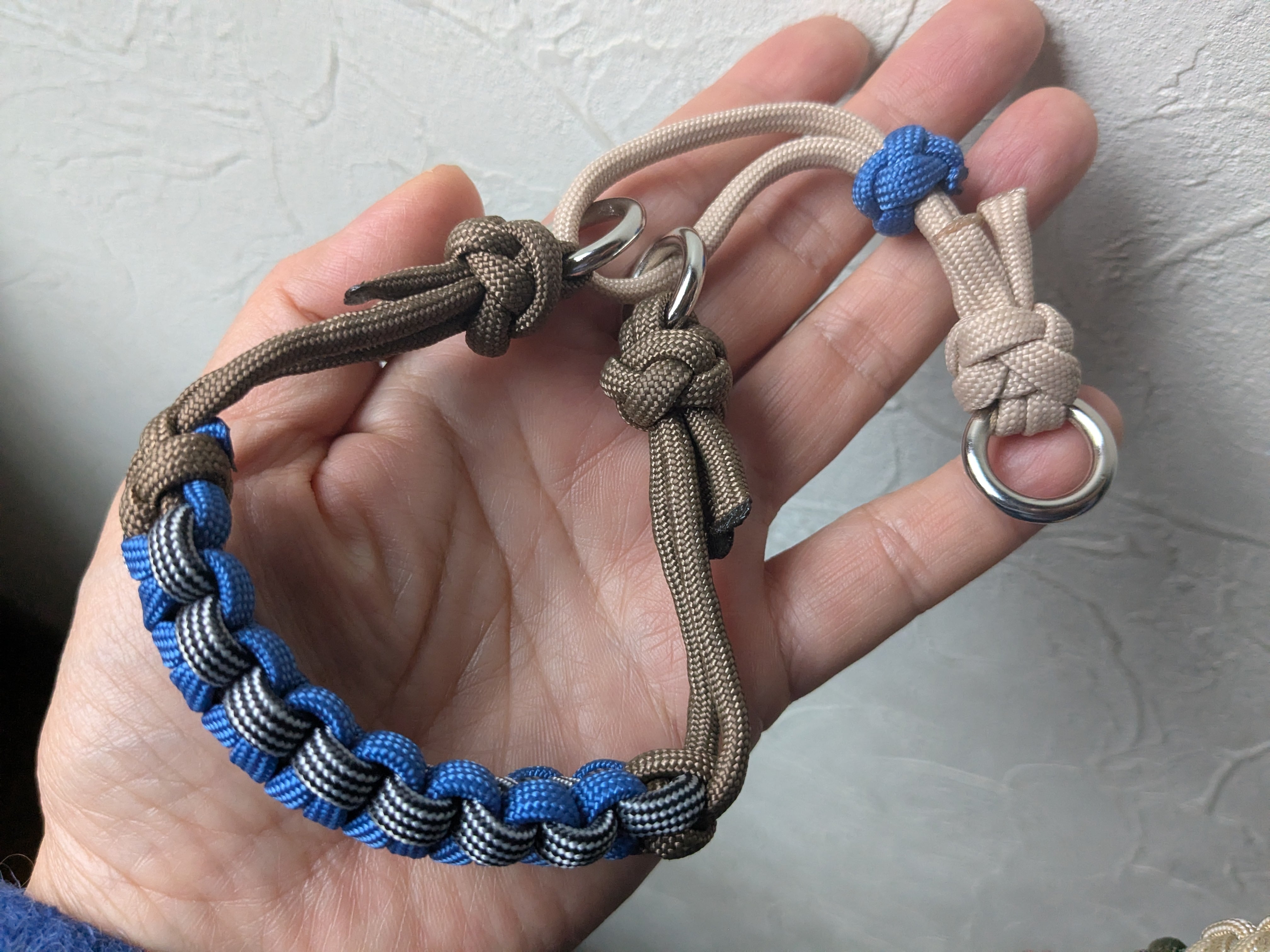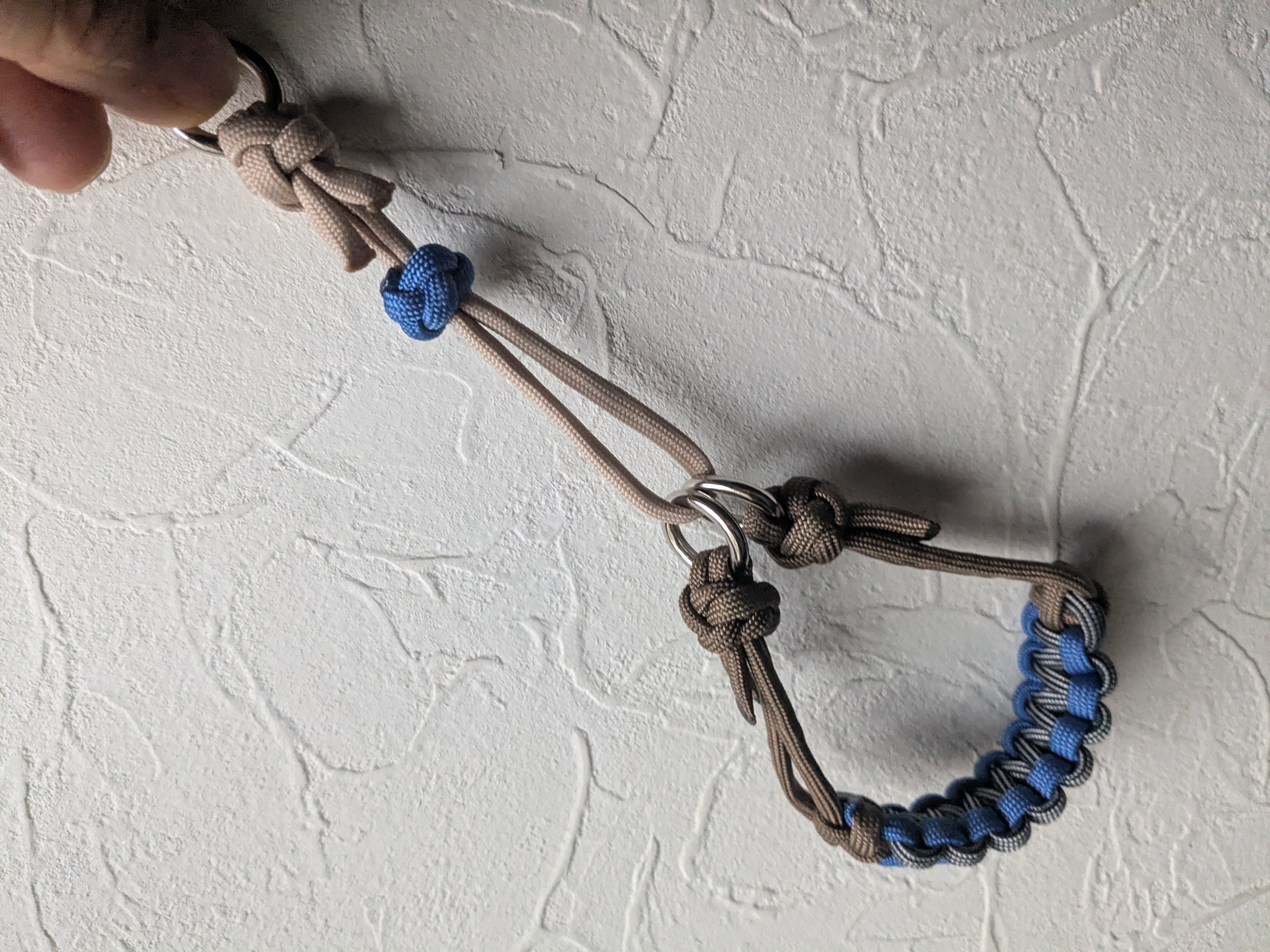 パラコードの特性上、引っ張りには強い素材ですが、噛みつきには弱い場合があります。使用中は定期的にご確認ください。