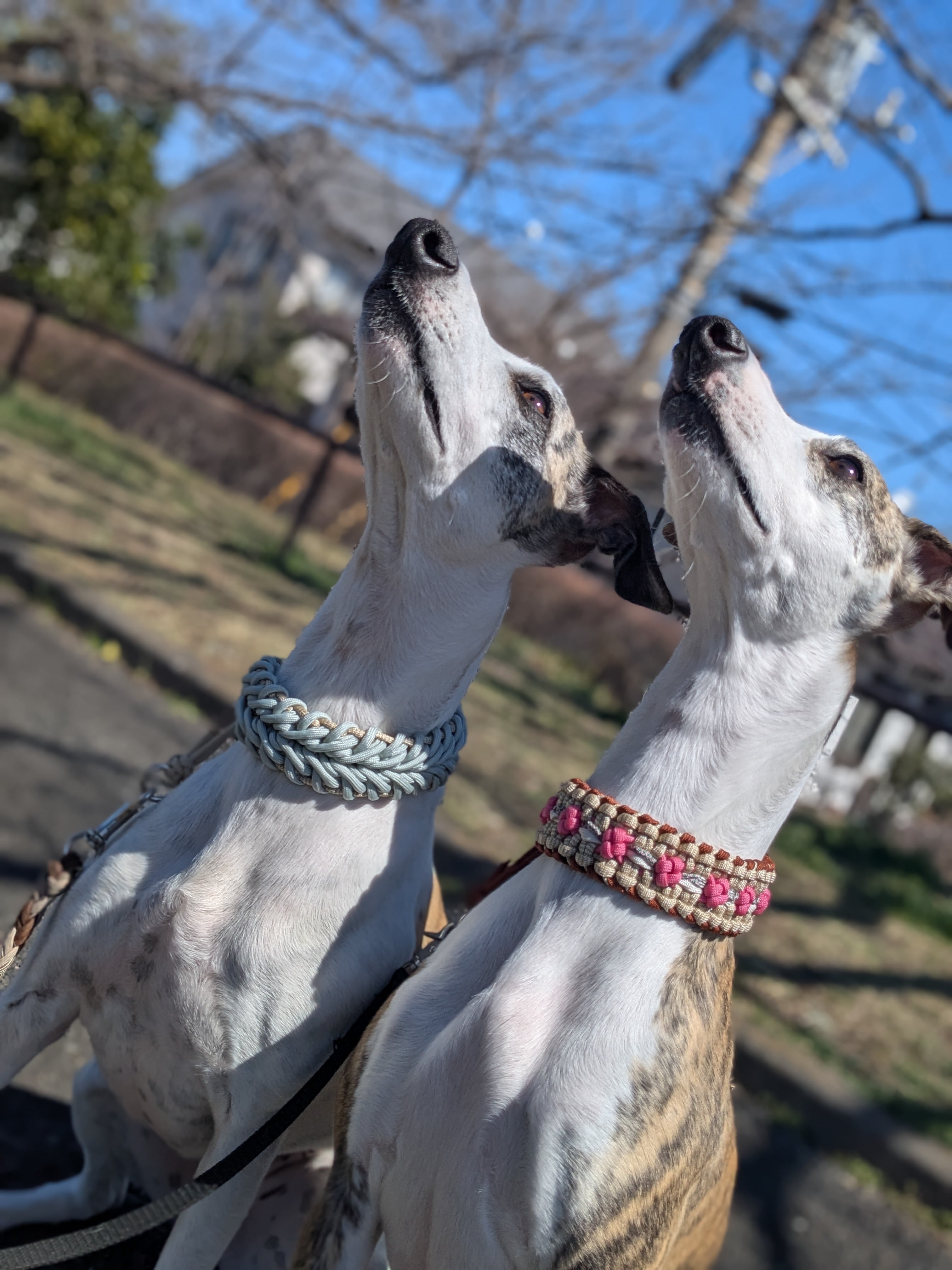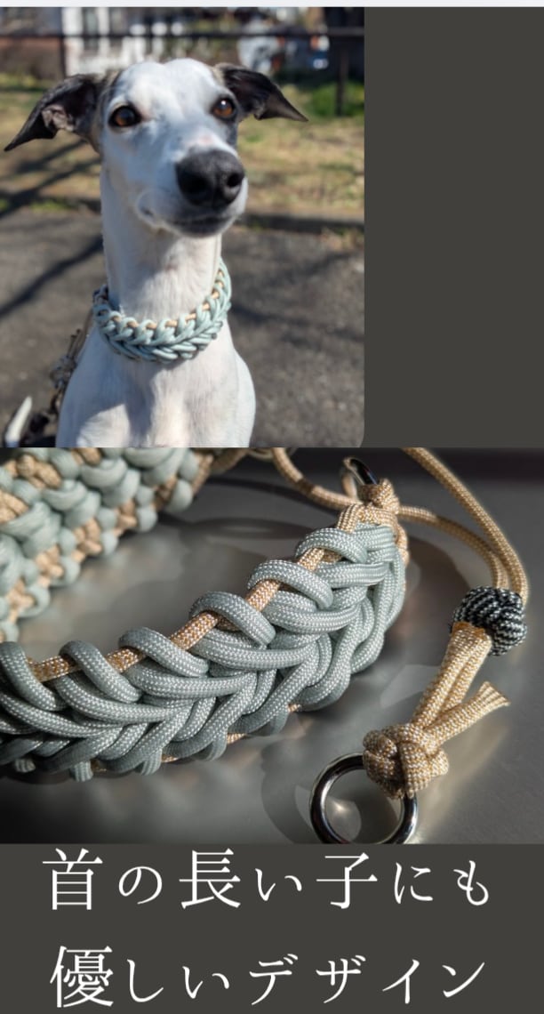 パラコード ハーフチョーク 波 シルバーxベージュ / 中型〜大型犬用 / セミオーダー Paracord Half choke collar