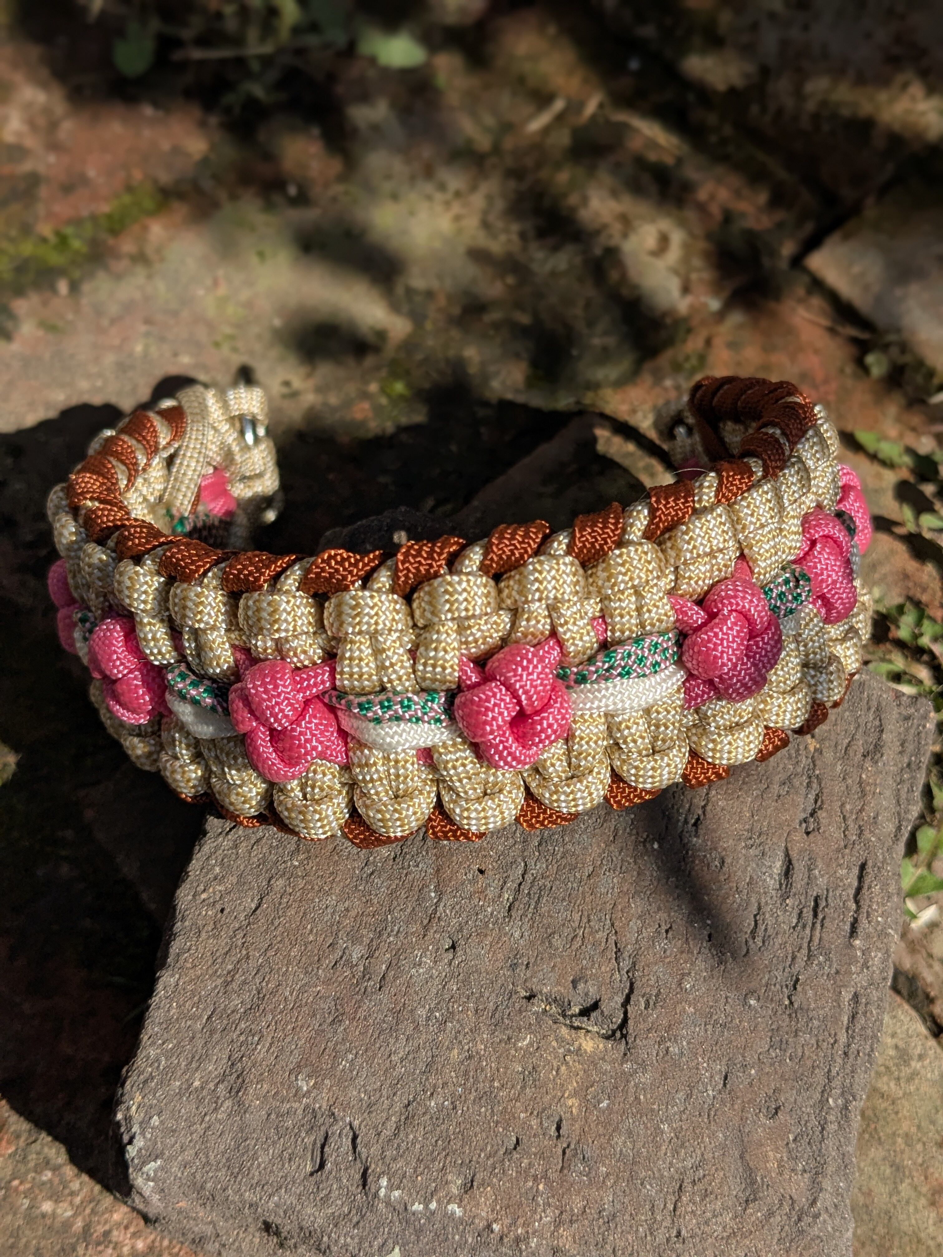 限定2本 パラコード ハーフチョーク 花 / ピンクxベージュx茶 / 中型〜大型犬用 / セミオーダー Paracord Half choke collar